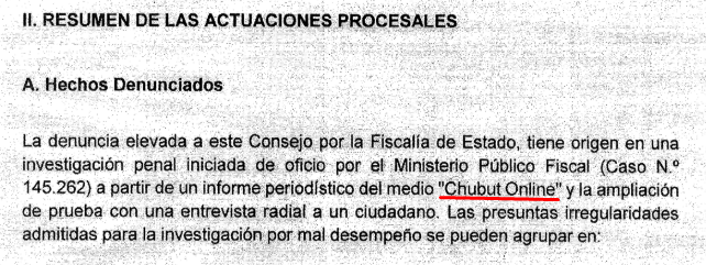 El expediente se originó a raíz de una investigación periodística exclusiva de ChubutOnline, cuyos hallazgos motivaron la denuncia y dieron inicio al proceso de investigación formal en el Consejo de La Magistratura y en la justicia penal.