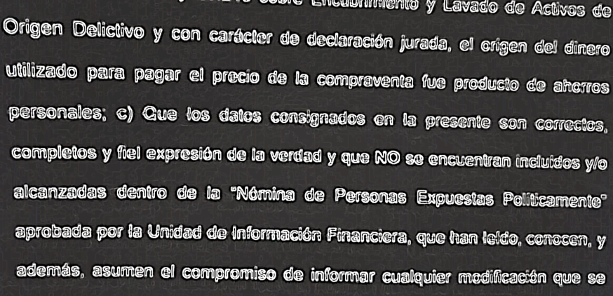 Y también hay otro dato llamativo: en una escritura realizada figuraría que sus parientes directos no se encontrarían incluidos o alcanzados dentro de la “Nomina de Personas Expuestas Políticamente” de la UIF, algo que sería totalmente falso pues tratándose de hijos de un magistrado son “personas expuestas políticamente por parentesco o cercanía”.