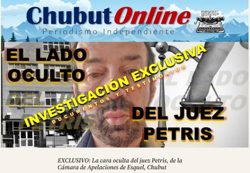 Los hechos investigados se encuentran en el siguiente LINK: https://chubutonline.com/chubut-online-patagonia-argentina/exclusivo-la-cara-oculta-del-juez-petris-de-la-camara-de-apelaciones-de-esquel-chubut/