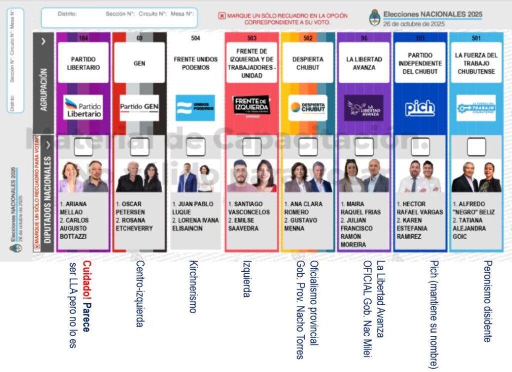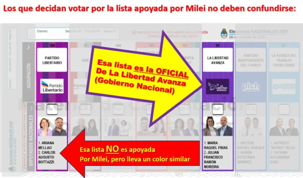 Cuidado! No se confunda! Hay un partido nuevo y desconocido que de manera intencional eligió un color violáceo similar al de La Libertad Avanza y se hacen llamar “libertarios”. Es evidente que han tratado de confundir a los votantes con el nombre del partido y con el color elegido.